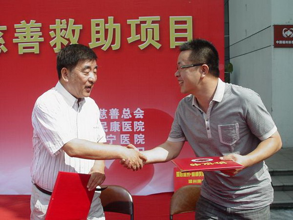 向市慈善总会捐赠30万元,与市慈善总会的30万元救助经费一同为全市贫困家庭精神疾病患者提供康复救助。同时,双方签署了合作协议,力争不断扩大慈善医疗救助工作范围和加大救助力度。仪式上,5名患者家属代表获市慈善总会提供的5000元爱心救助金。