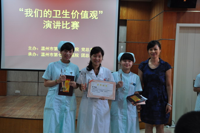 为深入学习贯彻党的十七届六中全会及市第十一次党代会精神,凝练并大力弘扬体现社会主义核心价值体系的医疗卫生职业精神和职业道德,以邓小平理论和“三个代表”重要思想为指导,全面落实科学发展观,深入实施“三生融合、幸福温州”总战略,根据浙江省卫生厅党组和中共温州市委的部署,深化温州卫生文化建设,按照中共温州市卫生局委员会文件《关于开展“我们的卫生价值观”大讨论活动的通知》(温卫党[2012]18号)的精神,篮球博彩党总支在全院范围内开展“我们的卫生价值观大讨论”主题演讲比赛。2012年8月31日演讲比赛拉开帷幕,由胡立荣院长,施肖峰书记,林崇光、姜德国、郑维芳副院长,党办卢捷梅主任组成的评委团,另外还特邀了嘉宾评委——温州广播电台著名主持人吴桅老师。选手的演讲声情并茂,让人感动,讲述着一件件工作中真实的事件和坚守本职岗位的信念。比赛结束,吴桅老师专业的点评给参加的选手收获颇多,胡立荣院长慷慨激昂的讲话更是让所有的参赛者和观众为之一振。第七团支部获得了团体一等奖的优异成绩,第七团支部的徐郑玉夺得了个人一等奖。