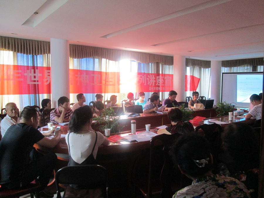 为迎接第22个世界精神卫生日, 10月9日下午2点,篮球博彩防治科联合瓯海区南白象街道开展《精神卫生法与精神障碍的社区识别》讲座, 社区民警、残联、民政干部、各村委代表、责任医师、精神疾病患者家属参加了此次活动。精卫办倪飞蕊医师从普及精神卫生法意义开场,引导群众关注心理健康,预防精神障碍的发生,同时指导社区精神障碍患者家庭康复,提倡共同维护好精神障碍患者的人格尊严和合法权益。