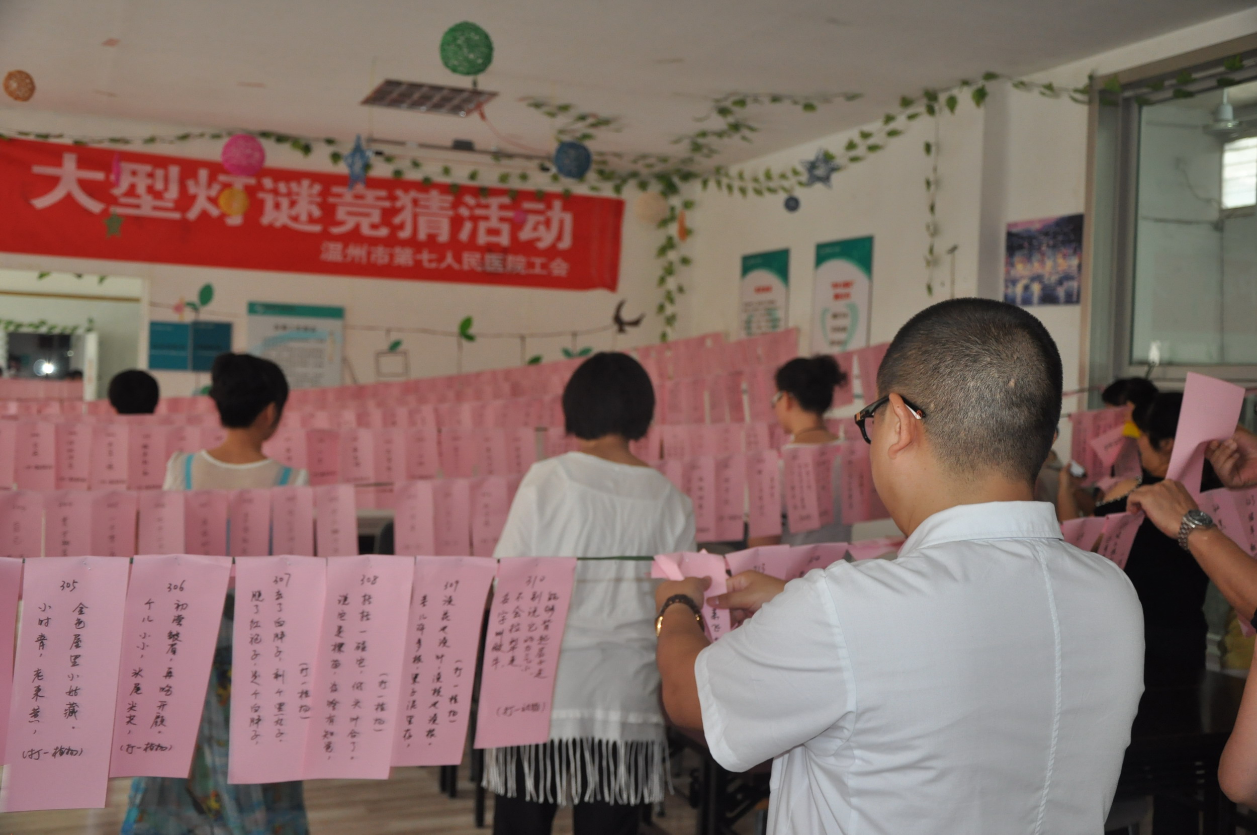 活动现场彩条飘飘,挂满了精心收集的500余条谜语,集知识性、趣味性于一体的猜灯谜活动吸引了全院职工的踊跃参与。整个活动现场充满了欢声笑语,猜中谜底的人员兴高采烈地领取奖品,一派节日的景象。