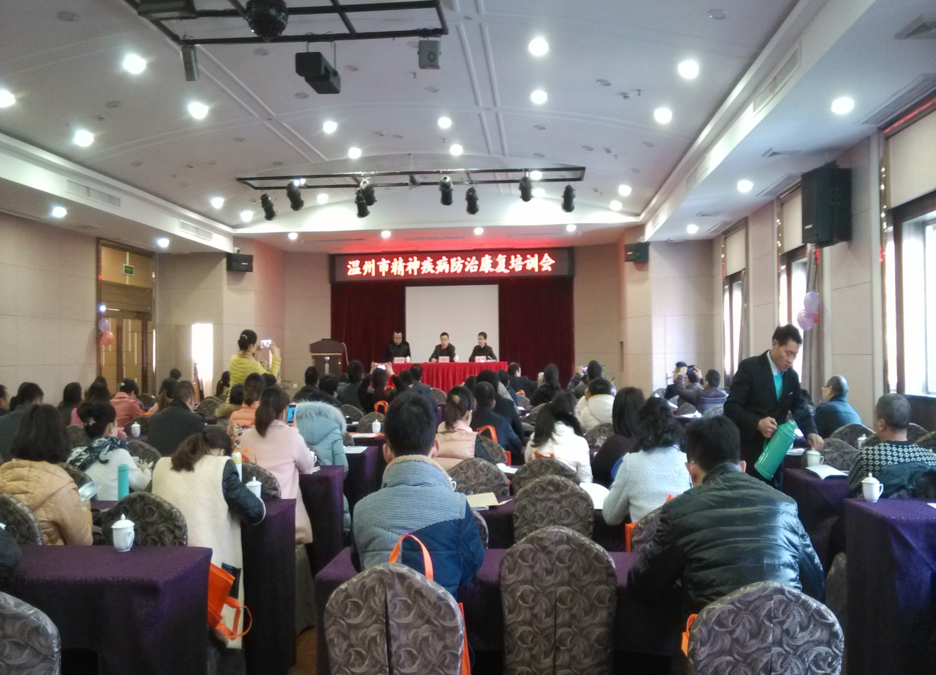 12月12日-13日,我市精神疾病防治康复培训班在龟湖饭店成功举办,来自杭州地区、温州各区县的精神科医生和精防医生约130多人参加,市卫生局疾控监督处处长朱联乐出席本次培训并讲话。
