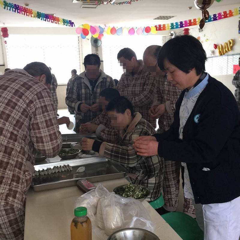 联欢会上病人们共同参与的多彩节目让平时沉闷的病区变得热闹非凡,病人们手舞足蹈,笑得合不拢嘴。联欢会上,医护人员为鼓励病人,给病人们进行了表彰,有年度劳动奖和“优秀病友”称号,现场还抽取幸运病友,赠送了精挑细选的春节礼物。之后,病区组织了包饺子活动,病人们共同参与.在欢笑声中医护人员和病人们一起挑馅、掐饺子边。