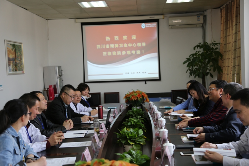 3月31日下午,四川精神卫生中心纪委书记何如、副院长向虎一行7人来篮球博彩参观交流,篮球博彩林小东院长、胡立荣书记、林崇光副院长、张伟副院长和部分相关职能科室负责人代表篮球博彩 热情接待了来宾。