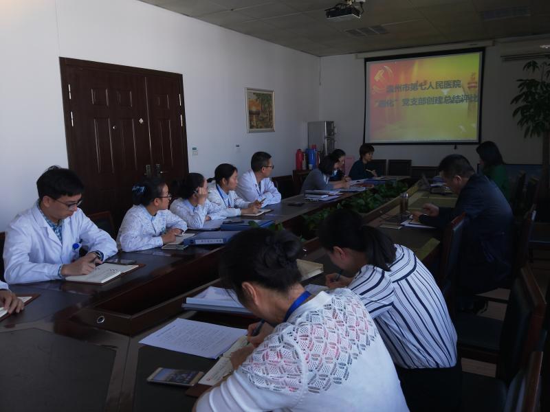 会上,首先各支部依次汇报了本支部是如何开展以阵地标准化、活动制度化、工作规范化、服务常态化为主要内容的“四化”党支部创建活动。接着每个支部相互交流查看了各支部的创建台账。汇报中发现,通过“四化”党支部创建活动,使党支部在工作规范上有新进展、工作活力上有新提升、服务发展上有新成效,有效提升党员活动的保障性、党内生活的严肃性、党建工作的实效性。比如医技支部、后勤支部、临床二支部等的助推“最多跑一次”主题党日活动,支部党员们集思广益,梳理了十几条就诊办事流程,大大方便了患者和家属。实现了党建和业务工作目标同步,有机结合。十月份的主题党日各支部都按照《温州市主题党日活动指导书》的六规范要求,做的有声有色,内容丰富,取得很好的实效。胡立荣书记还就党员应知应会题目现场抽查了各位支委会成员,并语重心长的强调作为党务干部做好党建工作的重要性和使命感。