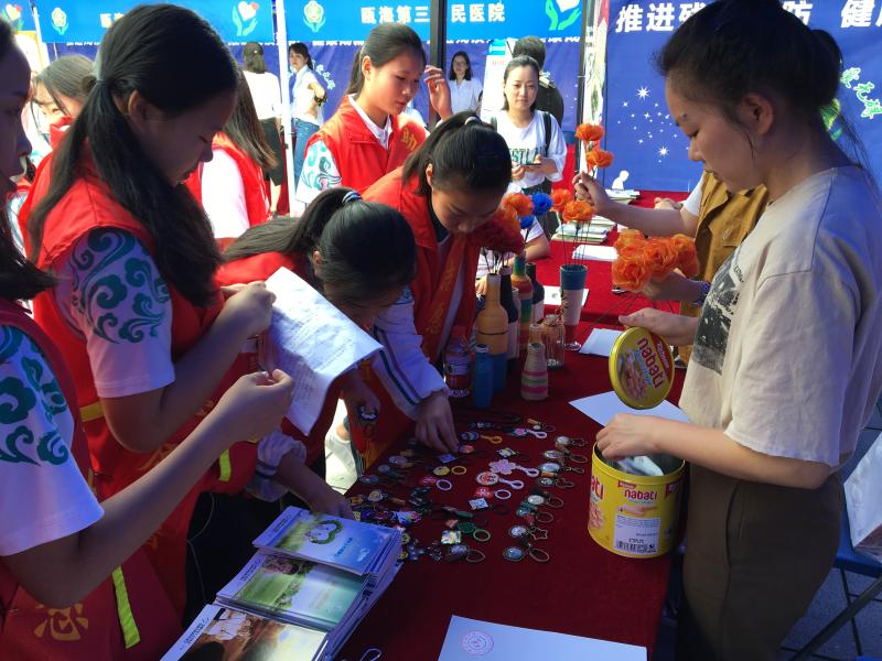 活动启动仪式在瓯海区府广场举行,市七医医务工作者积极参与,并带去篮球博彩精神障碍康复患者手工制作的精美工艺品进行义卖,展现该院康者康复成果。义卖吸引了大批热心市民的关注,在了解失七医精神残疾患者康复情况后,纷纷购买手工艺品,献出自己的一份爱心。此外,市七医还为到场的残疾人士提供免费的血压测量,提供精神康复、残疾预防宣传及相关服务。通过展板及发放科普宣传册的形式进行精神疾病宣传。现场测量血压20余人、发放资料100余份。