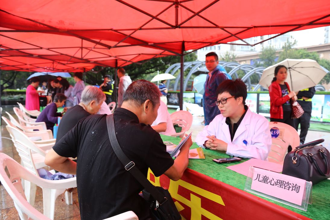 (温州市心理卫生中心)围绕主题,在松台广场举办心理健康义诊服务活动,吸引了许多过往市民驻足。市卫计委疾控处副处长王国强出席活动。