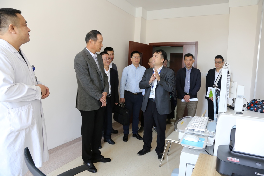 在参观交流中,一行人先和门诊大厅的智能机器人“晓医”展开了对话。“你好,我最近睡眠不好,需要去哪个科看?”“你好,请问住院楼怎么走”……对于这种问题,采用讯飞AIUI人机智能交互技术,脑中蕴含了超过1万条的医学常识的“晓医”都能对答如流。随后,各位领导参观了检验科的先进设备,了解如近红外脑功能成相等仪器的功能和用法。