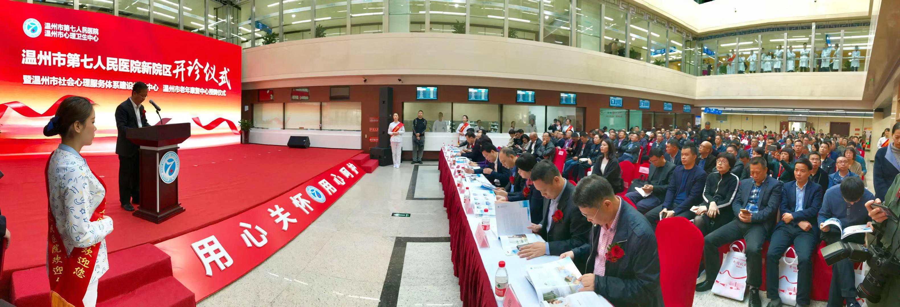 开诊仪式上,展播了市七医宣传片,郑朝阳、程锦国致辞,林小东介绍篮球博彩 发展情况,并举行了温州市社会心理服务体系建设指导中心、温州市老年康复中心授牌仪式。最后,郑朝阳宣布“手印LED”潘桥院区正式开诊。