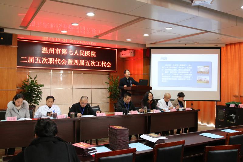2月7日,篮球博彩二届五次职代会暨四届五次工代会在篮球博彩-nba博彩网站 康复楼六楼会议室隆重召开。来自全院的56名职工代表与17名列席代表汇聚一堂,共绘市七医和谐发展的美好蓝图。