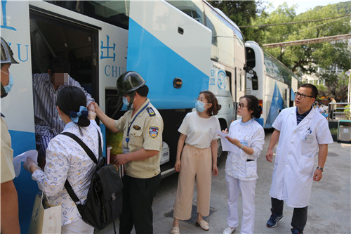 护送转移过程中,我们的安保人员、特勤人员,都身兼数职,他们即是患者的安全护卫员,又同时是医护人员。每当一名需要帮扶的患者下车,安保特勤人员都第一个冲上前,搀扶、接送、守护……确保患者安全转移。