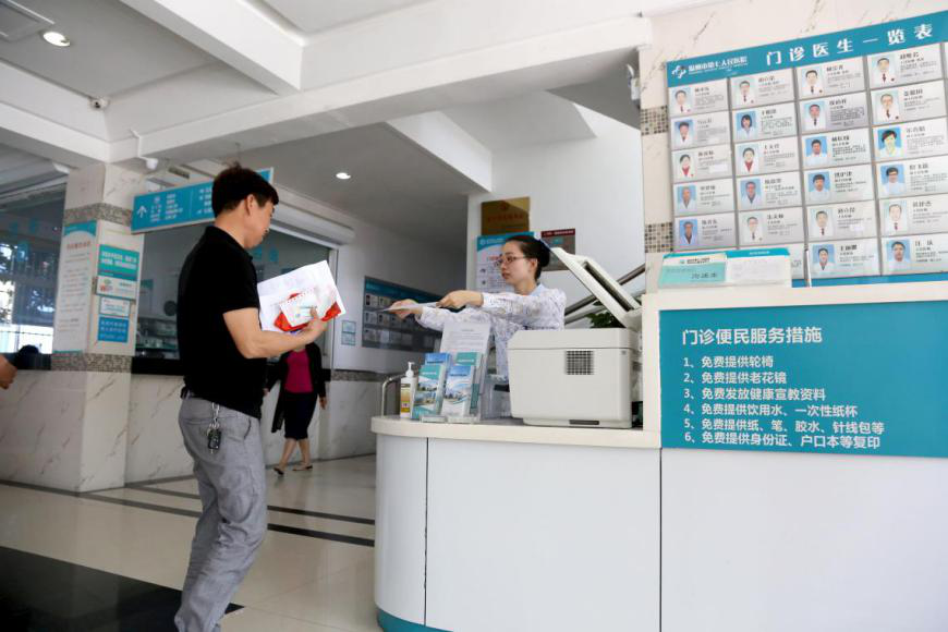 门诊大厅有饮水机、充电器、针线包等,还配合了轮椅等供患者使用。篮球博彩通过流程、服务优化,促进篮球博彩