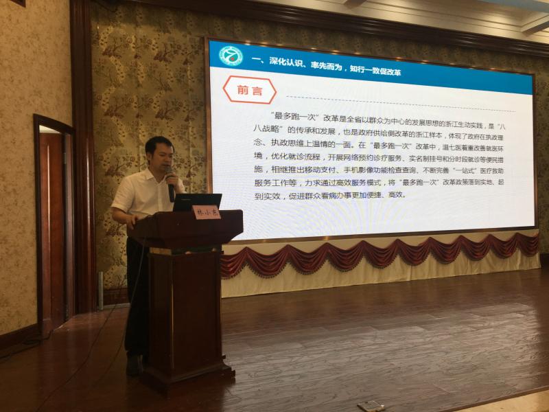 ,由院长林小东围绕改革热点就《“加速度”换“满意度”——温七医推进“最多跑一次”改革的实践与思考》为主题,在大会上与到场嘉宾进行了交流。