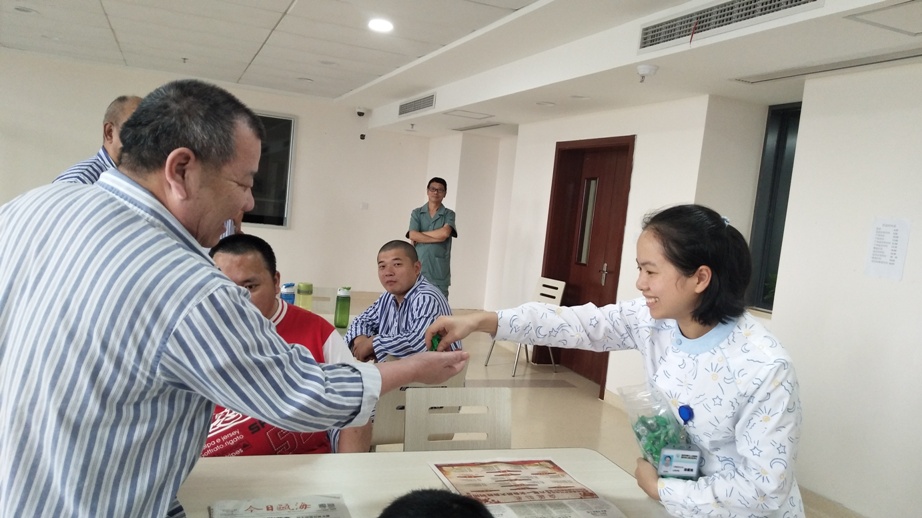 考虑到吸烟带来的火灾隐患,为了让患者拥有清新的康复环境,更为了患者们的身体健康,献珠护士长为患者们进行戒烟宣教,实行“无烟病区”,开始全面戒烟,并买来薄荷糖,免费发放给患者助其戒烟。