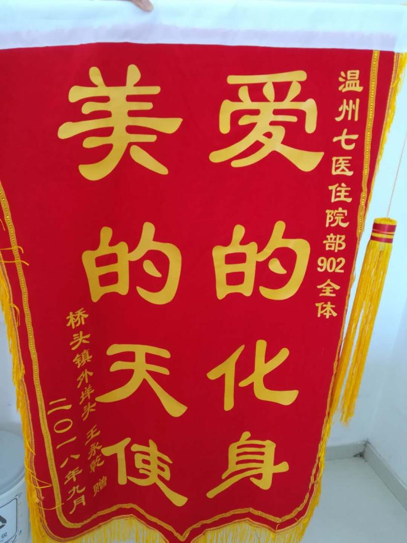 近日,出院不久的王阿公兴冲冲地来到902病区,原本平静的病区,因王阿公的到来热闹起来了。大家有的好奇怎么出院才几天的王阿公这么开心的来科室找医护人员,有的担心王阿公是不是身体又有什么不舒服的地方。直到王阿公把红彤彤的锦旗神神秘秘的递到我们手中,大家才恍然大悟。