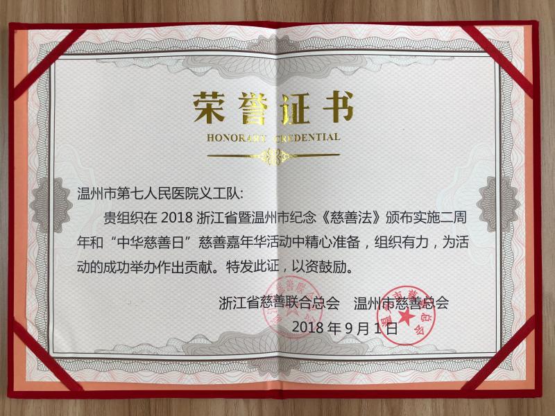 今年9月1日是《慈善法》颁布实施二周年和9月5日是第三个“中华慈善日”。为了进一步发动和引导我省社会各界学习宣传、贯彻执行《慈善法》,传承和弘扬中华民族崇德向善、乐善好施的传统美德,在全社会营造人人慈善、善行天下的慈善文化氛围,在省民政厅和市人民政府支持下,由浙江省慈善联合总会、温州市委宣传部、温州市文明办、温州市民政局、温州日报报业集团、温州广播电视传媒集团、温州市慈善总会联合主办(2018)浙江省暨温州市纪念《慈善法》颁布实施二周年和“中华慈善日”慈善嘉年华服务活动于9月1日在松台山广场上举办。此次活动包括市七医义工队在内,共有87家单位、社会组织的义工队参与其中。