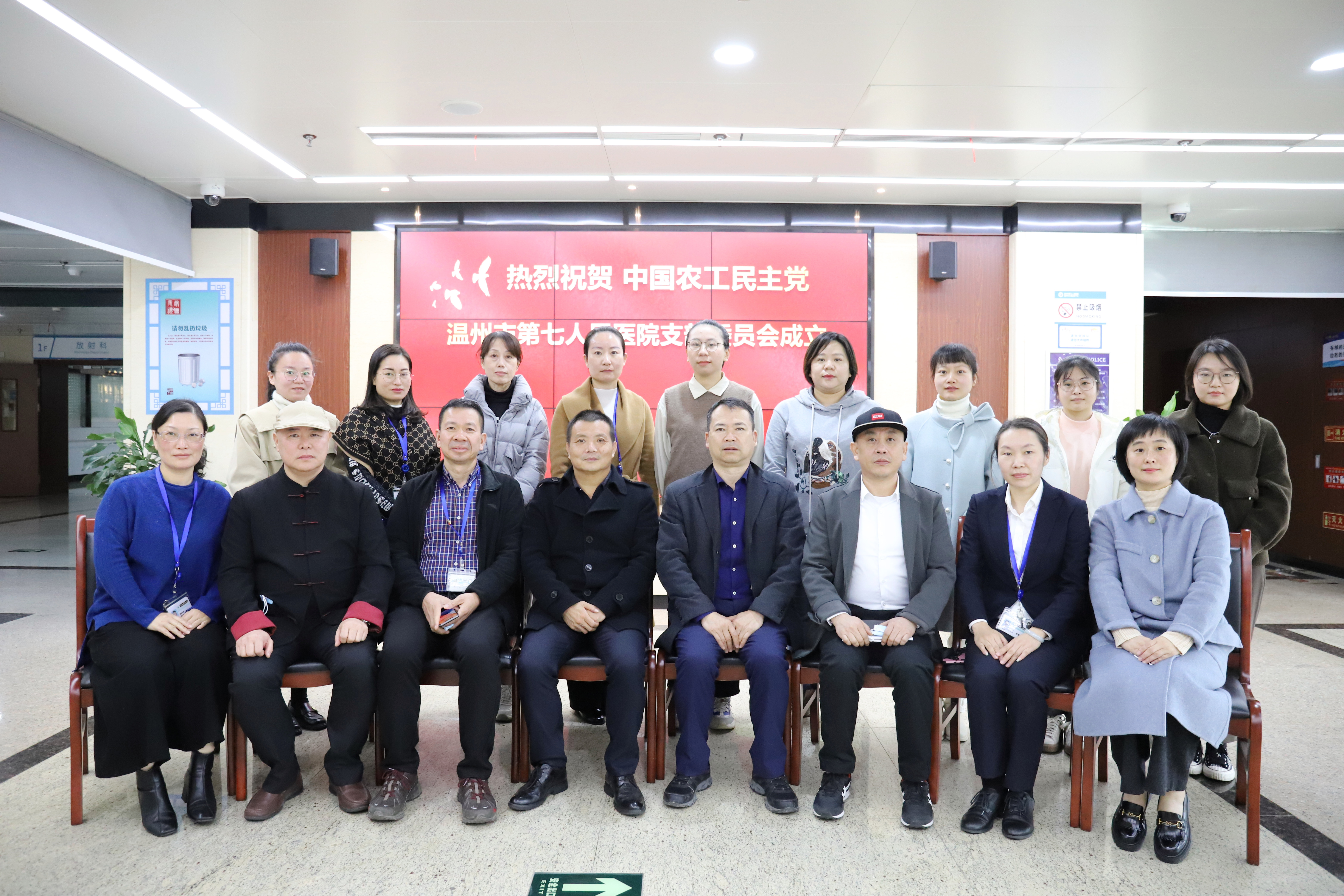 2021年11月24日下午,中国农工党篮球博彩-nba博彩网站 支部委员会成立大会在温七医潘桥院区门诊4楼1号会议室隆重召开。农工党市委会专职副主委陈伟峰,市委会秘书长、组织部部长陈琨,市委会宣传部长周晴,市委会办公室徐灿,农工党温州市综合二支部主委张兴华,温七医党委书记林小东,温七医党委副书记林崇光,农工党温七医支部全体党员参加会议。