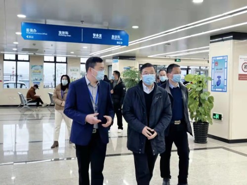 壬寅虎年第一个工作日上午,温州市卫健委党委委员、副主任陈继忠,党委委员、二级调研员龚军俊,健康促进与评价处处长吴治鹏一行看望慰问市七医一线工作人员,向辛勤工作的医护工作者送上新春的问候和美好的祝愿,感谢节日期间医务人员的辛苦坚守。市七医党委副书记、院长黄国永及班子成员陪同。
