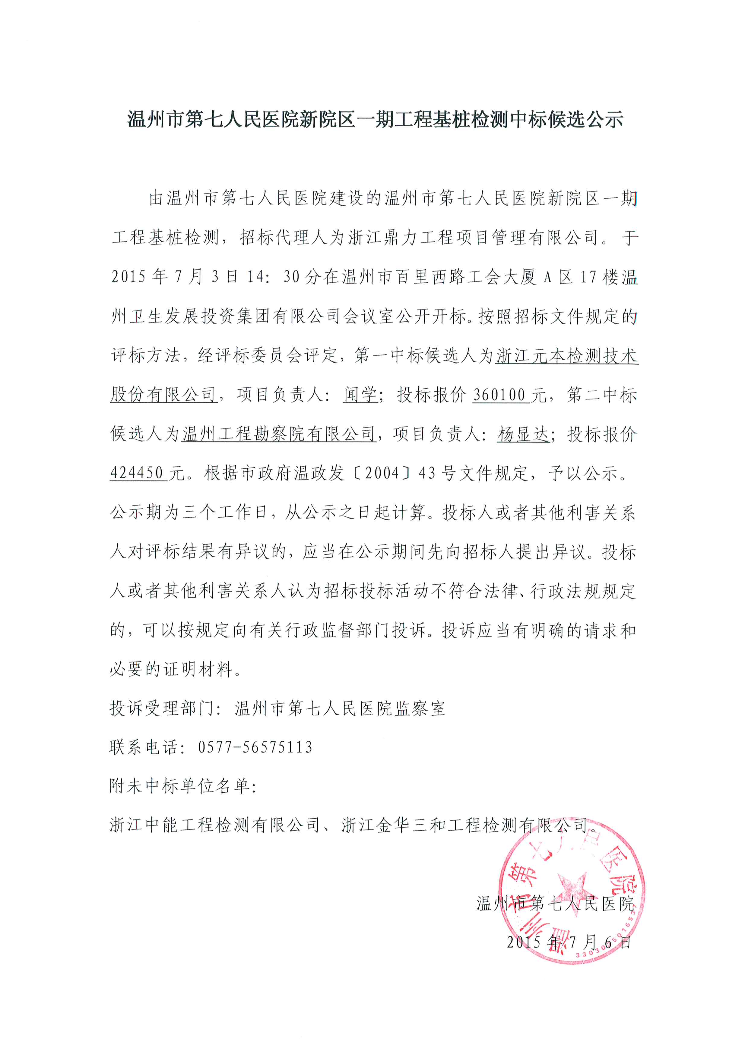 篮球博彩-nba博彩网站 新院区一期工程基桩检测中标候选公示