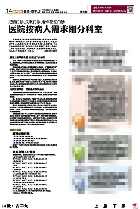 戒酒门诊、失眠门诊、老年记忆门诊——篮球博彩 按病人需求细分科室